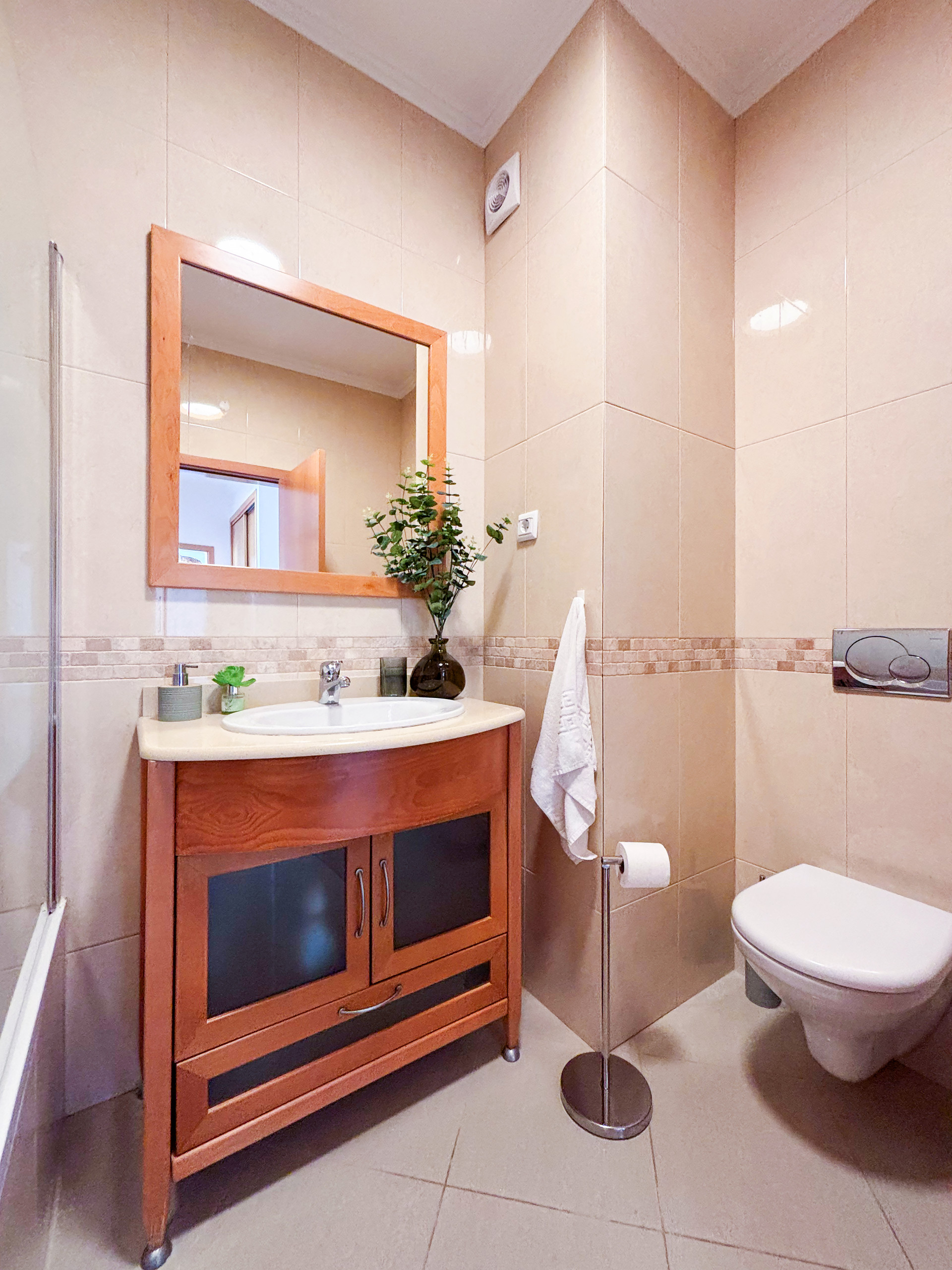 Das Badezimmer ist geräumig und mit einer Wellness-Dusche und einem Bidet ausgestattet. Die Küche ist perfekt ausgestattet mit allem, was Sie benötigen, um Ihre Mahlzeiten, Snacks oder meerinspirierte Cocktails zuzubereiten, einschließlich einer Nespresso-Maschine. Der Balkon verfügt über einen Bartisch, sodass Sie essen oder trinken können, während Sie die Fußgänger unten beobachten, oder einfach auf einem der Liegestühle entspannen und auf den Ozean blicken und wünschen, dass dieser Traum nie enden würde :-)