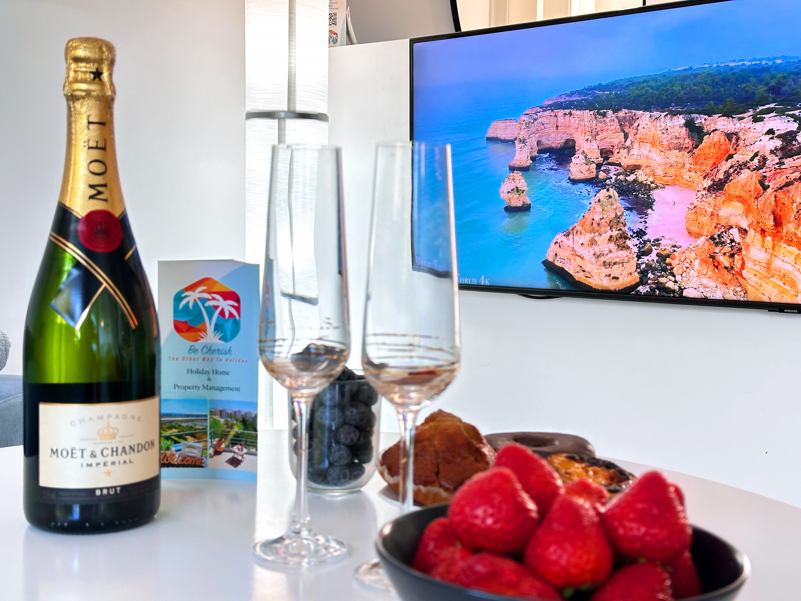 El apartamento está completamente climatizado y exquisitamente equipado con un dormitorio, incluyendo una cama de matrimonio. El salón es espacioso y tiene instalaciones de comedor, así como un sofá cómodo para relajarse y/o usar como una cama adicional extensible. Tiene internet de fibra óptica de alta velocidad, para que pueda transmitir su película favorita de Netflix en un excelente smart TV de 50 pulgadas.