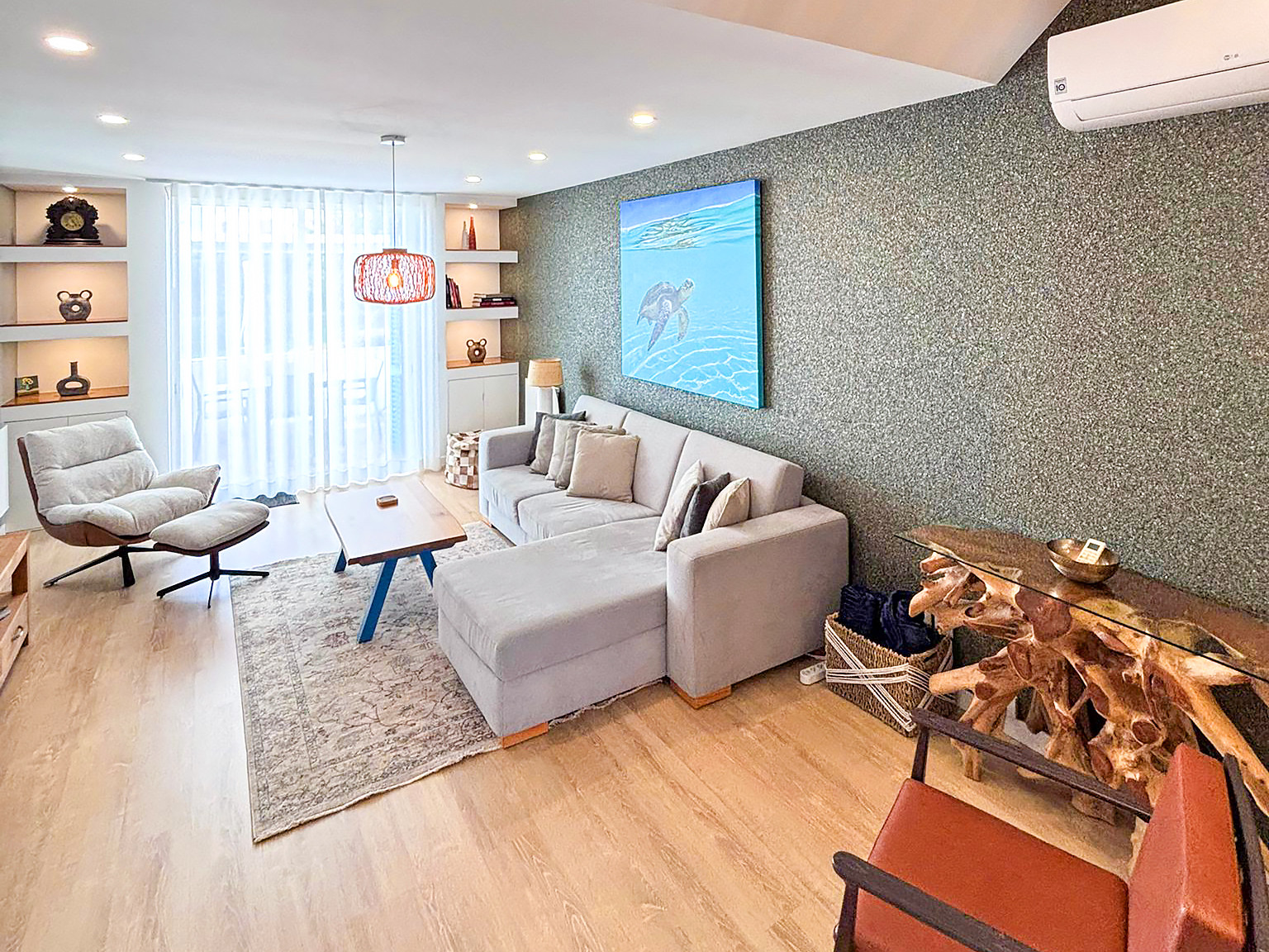 L'appartement est entièrement climatisé et exquisément équipé avec une chambre, comprenant un lit double. Le salon est spacieux et dispose d'installations de repas, ainsi qu'un canapé confortable pour se détendre et/ou utiliser comme un lit supplémentaire extensible. Il dispose d'un internet à fibre optique à haute vitesse, afin que vous puissiez diffuser votre film Netflix préféré sur un excellent smart TV de 50 pouces.