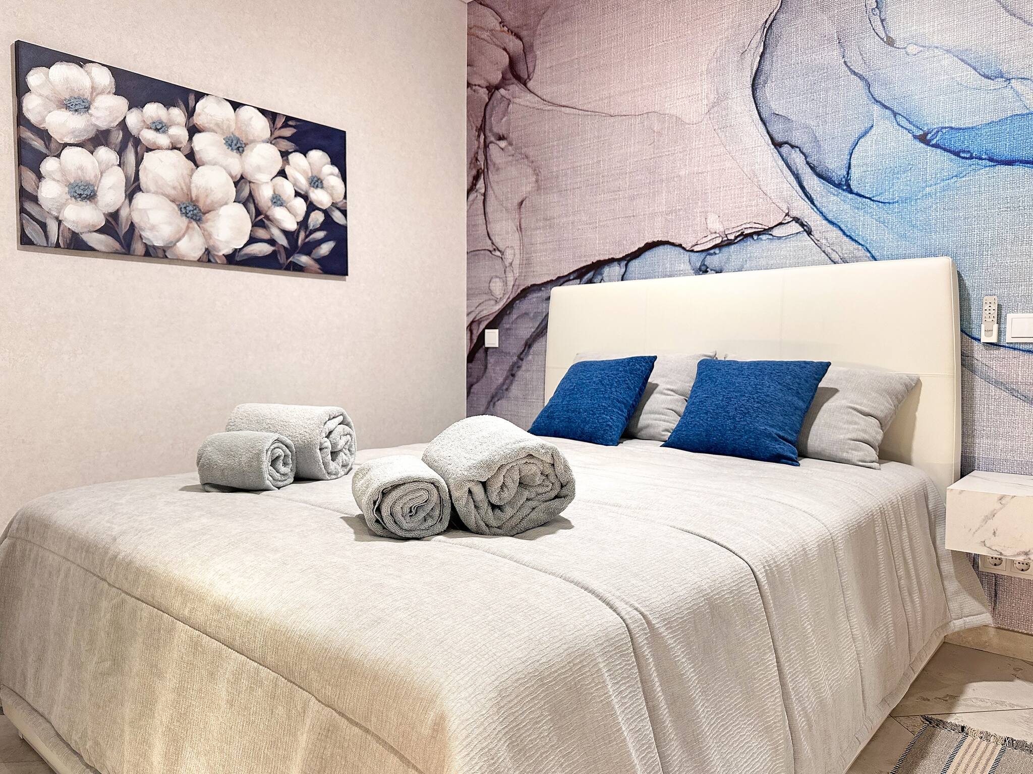 l'une des niches. Les meubles sont modernes, mais chaleureux et confortables.