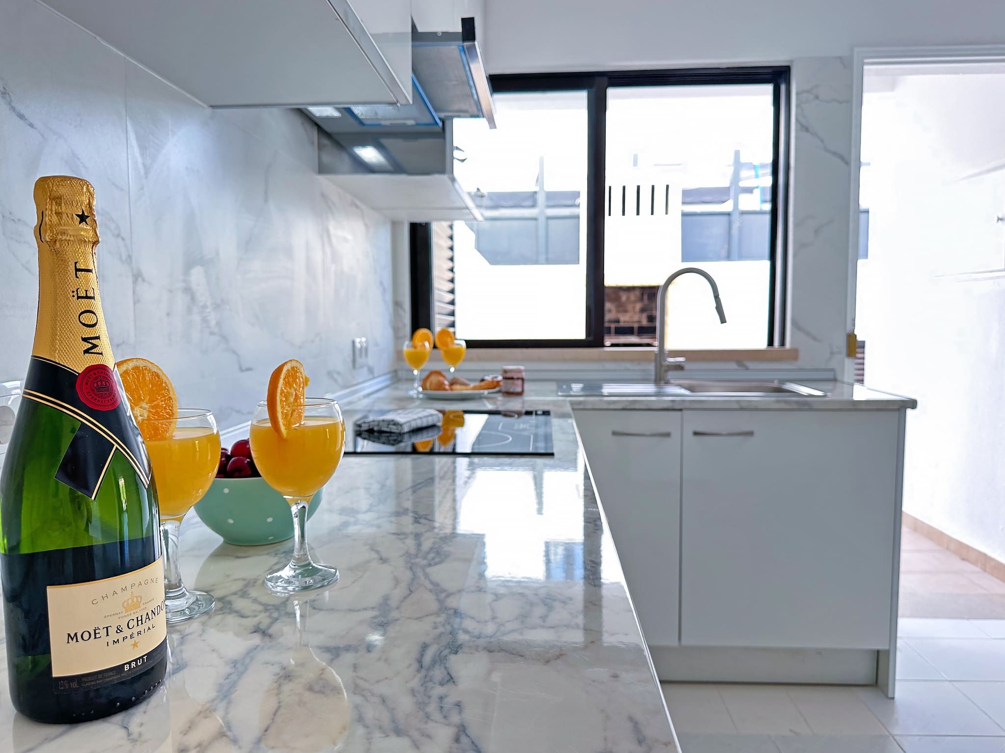 Le rez-de-chaussée dispose d'une cuisine entièrement équipée, adaptée aux familles, et d'un salon lumineux et ouvert — le cadre idéal pour des repas partagés et des soirées chaleureuses. Sortez pour profiter de la piscine exposée au sud, qui offre du soleil toute la journée.