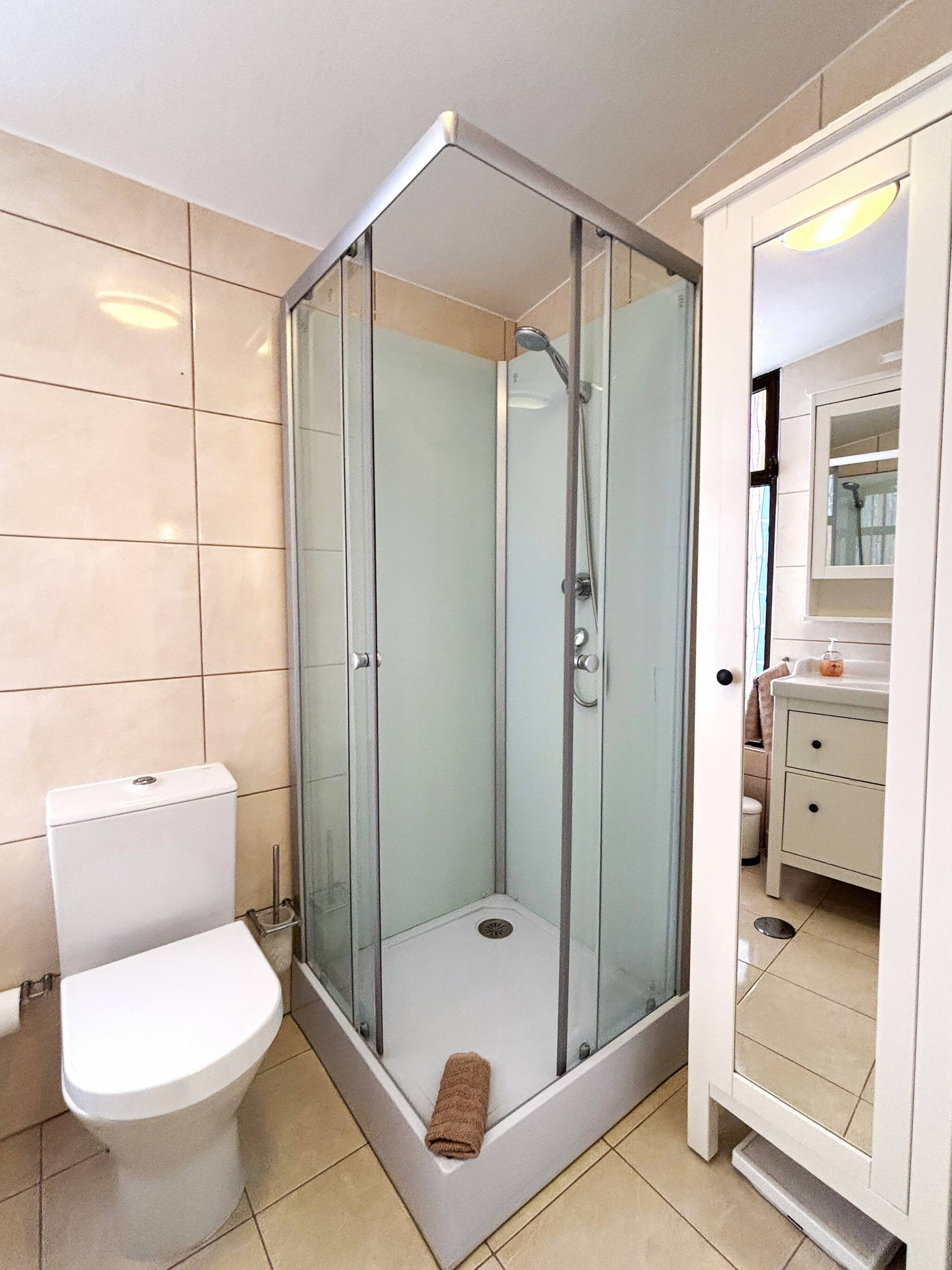 O apartamento está totalmente ar condicionado e exquisitamente equipado com um quarto, incluindo uma cama de casal. A sala de estar é espaçosa e tem instalações de jantar, bem como um sofá confortável para relaxar e/ou usar como uma cama adicional extensível. Tem internet de fibra ótica de alta velocidade, para que possa transmitir o seu filme favorito da Netflix num excelente smart TV de 50 polegadas.