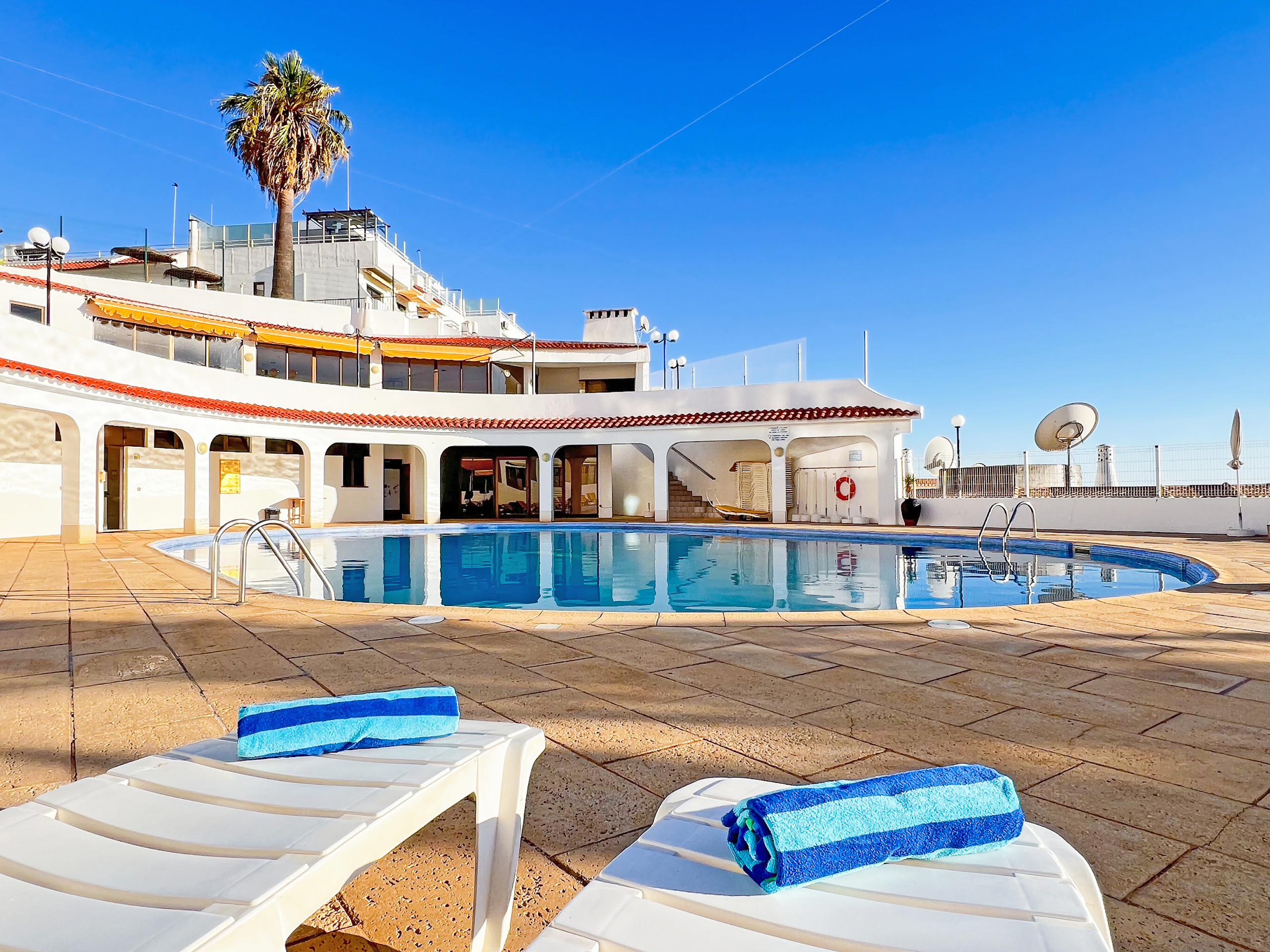 O melhor aspeto deste apartamento é, sem dúvida, a sua maravilhosa piscina e envolvente. Onde pode desfrutar de uma nadada matinal, bem como as incríveis vistas de Albufeira e do Oceano Atlântico.