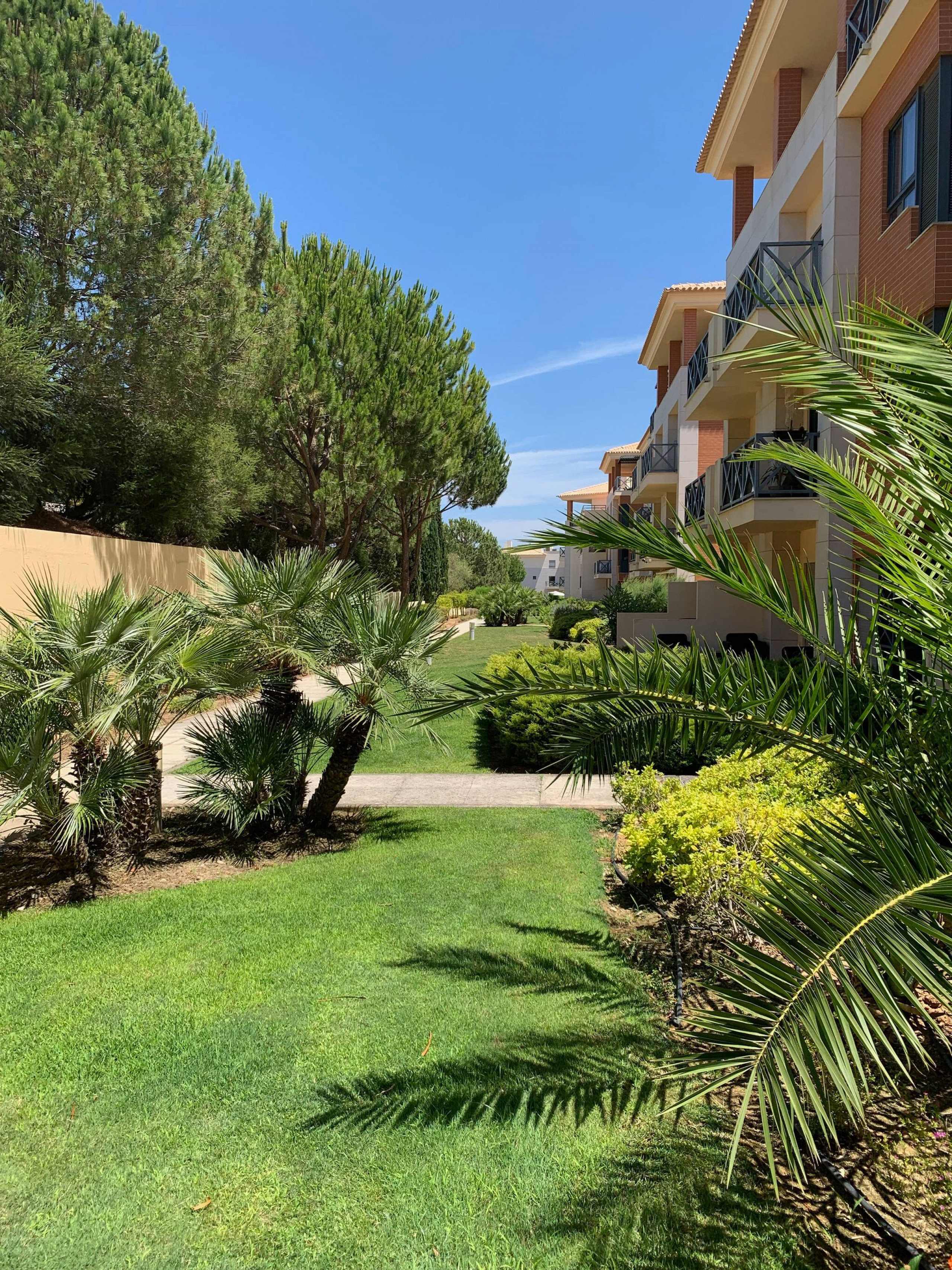 • Belos espaços verdes, duas piscinas de água salgada e um court de ténis