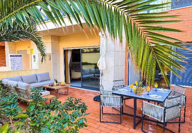 Deslumbrante Apartamento de Luxo de 2 quartos/2 casas de banho no rés-do-chão, numa localização privada e central dentro do resort Parque da Corcovada, mobilado e equipado de forma luxuosa e elegante, ampla sala de estar/jantar, cozinha totalmente equipada, grandes pátios frontais e traseiros, TV a cabo gratuita, WiFi e coluna Bluetooth, acesso direto a piscinas e jardins, oferece tranquilidade e privacidade, curta caminhada para várias praias, inúmeros restaurantes, zona de entretenimento, parque infantil e campo de minigolfe.