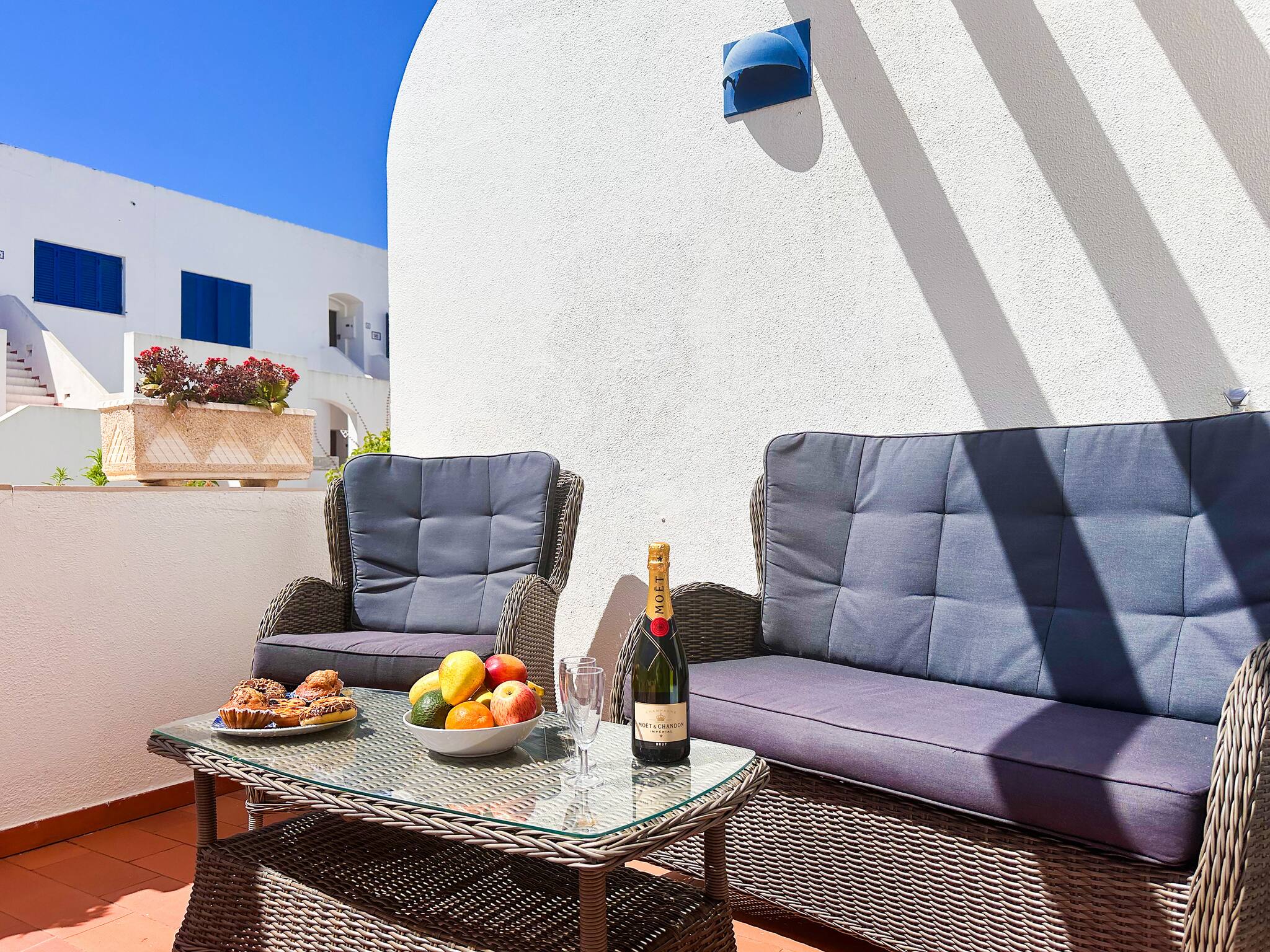 - O pátio é perfeito para jantar ou tomar o pequeno-almoço, e tem acesso direto à piscina.