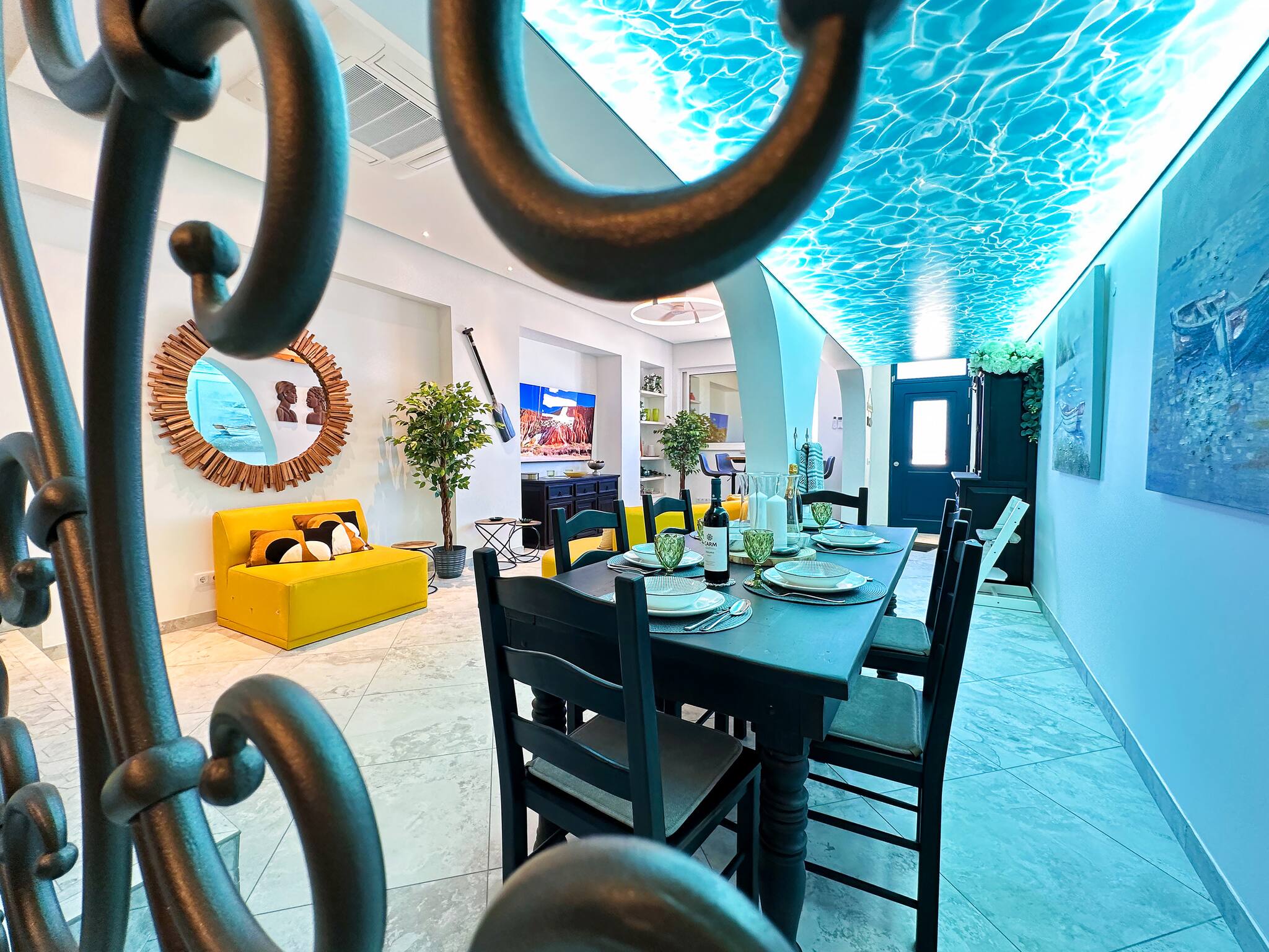 Ao entrar, é imediatamente surpreendido pela singularidade desta casa. A entrada do corredor está ornamentada