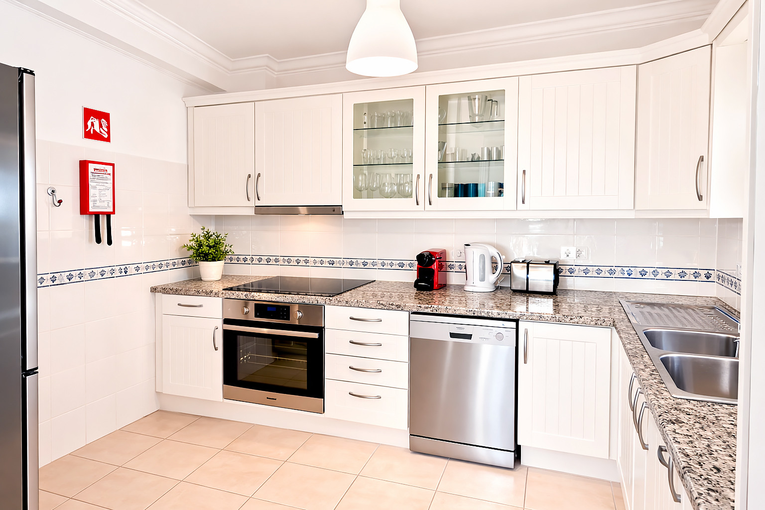 A cozinha é independente, está equipada com frigorífico, microondas, forno, congelador, máquina de lavar louça, louça/talheres, utensílios/cozinha, máquina de café, torradeira, jarro eléctrico e máquina de sumos.