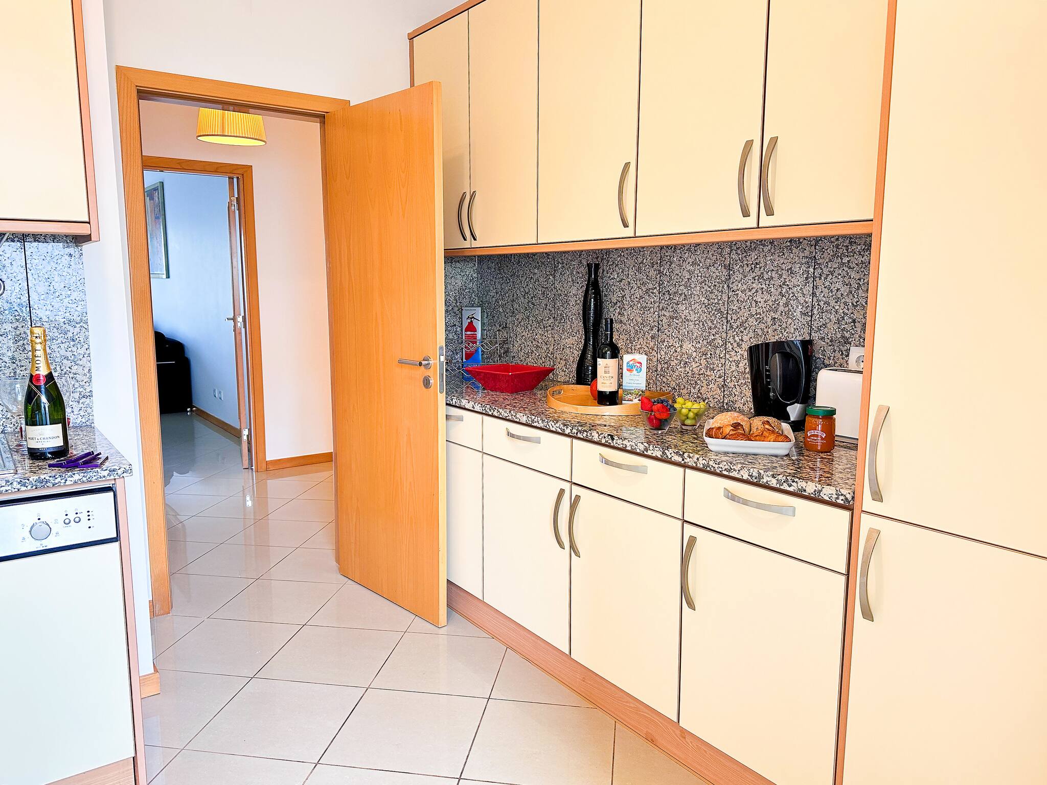 • A fully equipped kitchen with an adjacent balcony