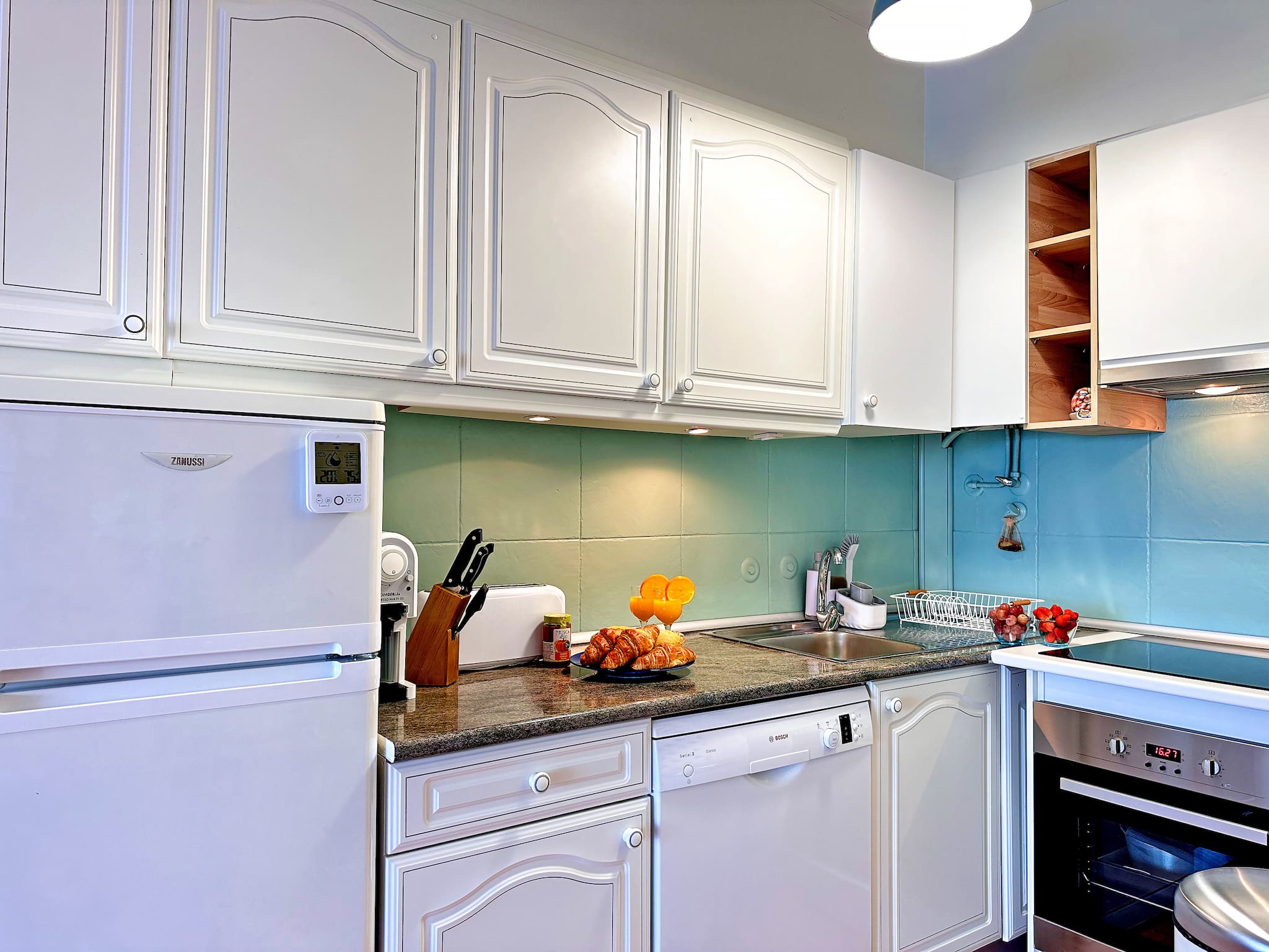 It offers a fully equipped kitchenette with all the utensils you might need. In the living room, you will find a comfortable sofa and resting chairs, a large flat-screen smart TV and high-speed internet!