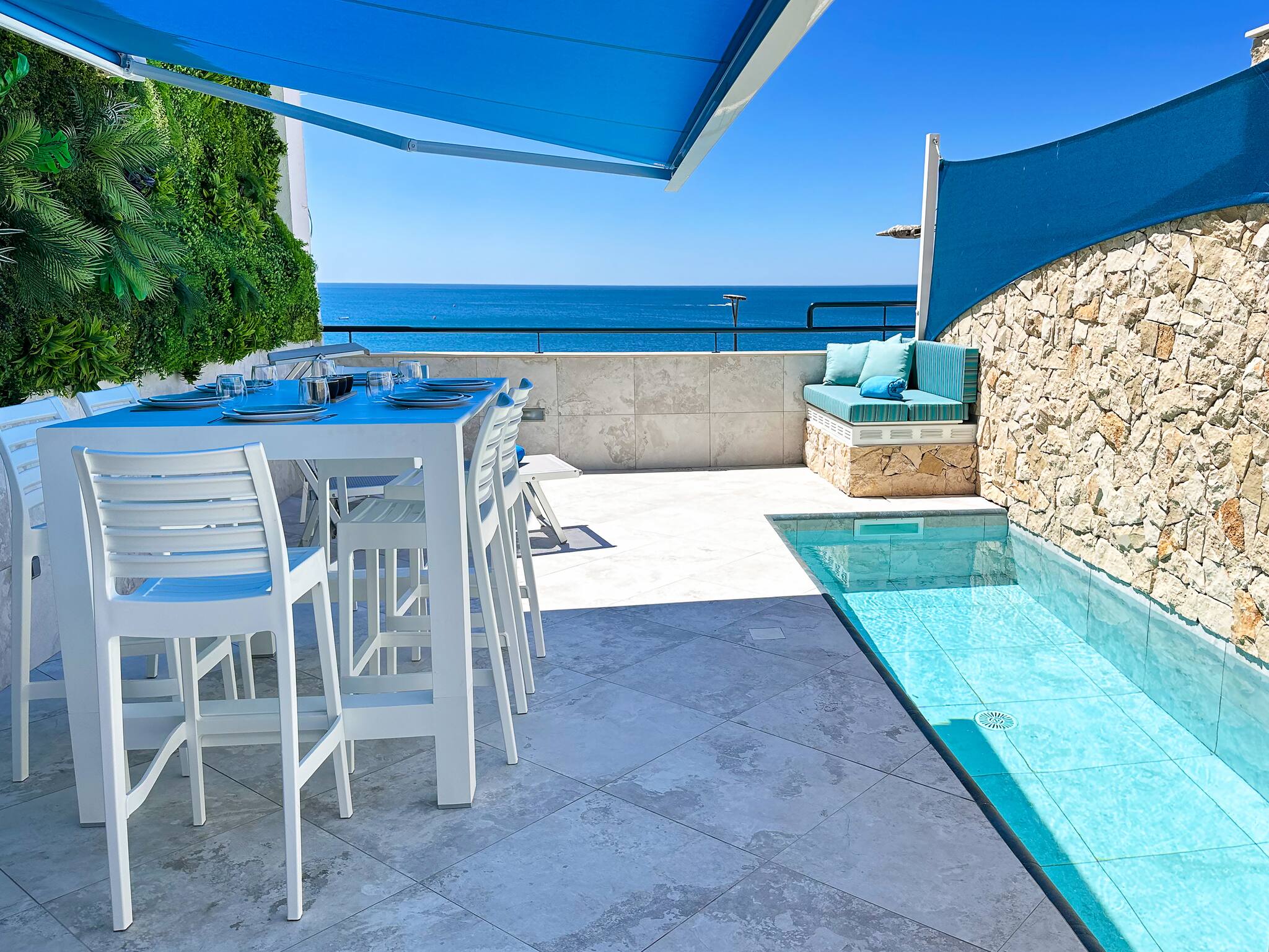 an 8 meter high vertical garden on the other. A modern pool and outside shower (with warm water) offers all