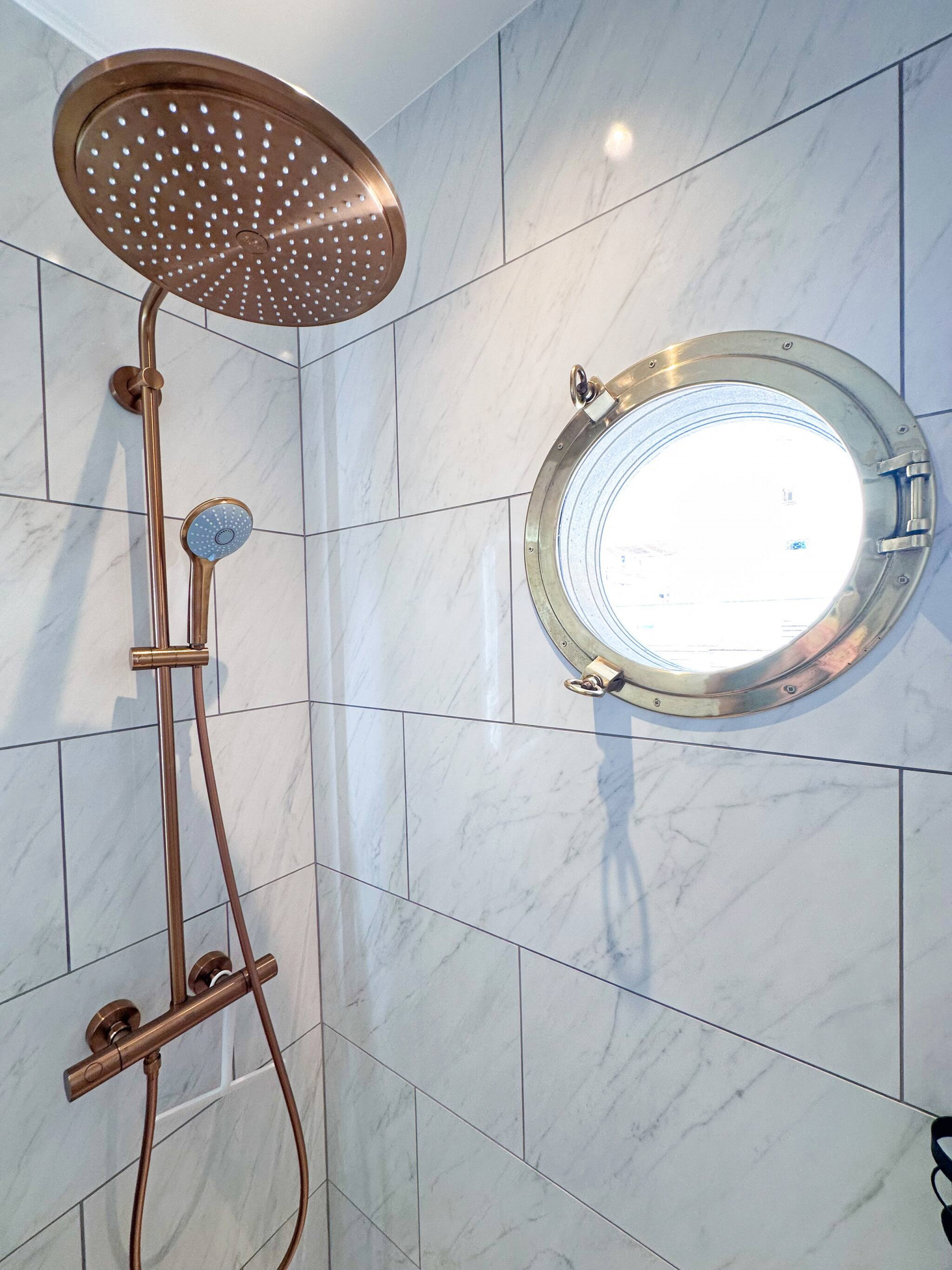 brass porthole and complementing fittings.