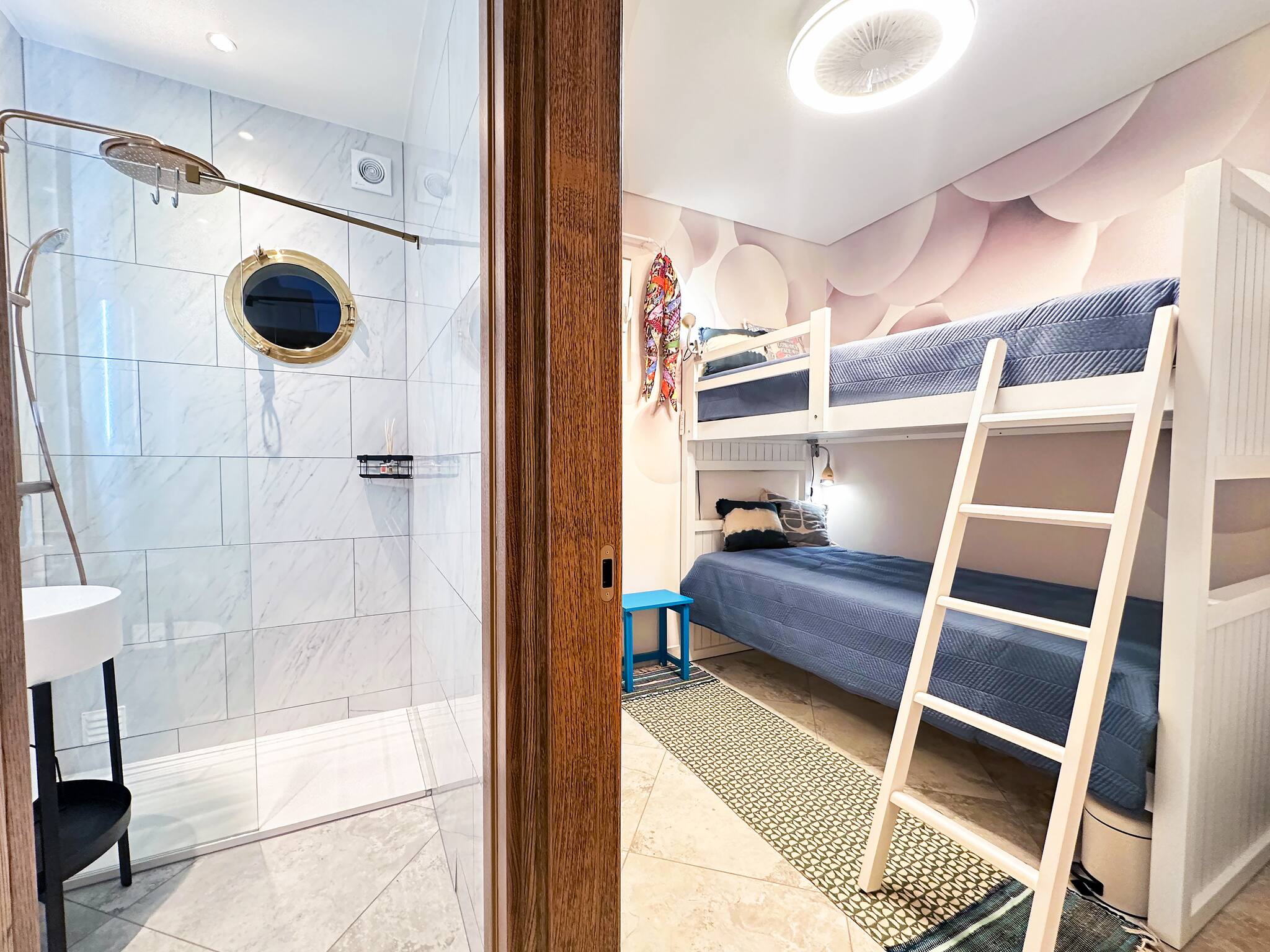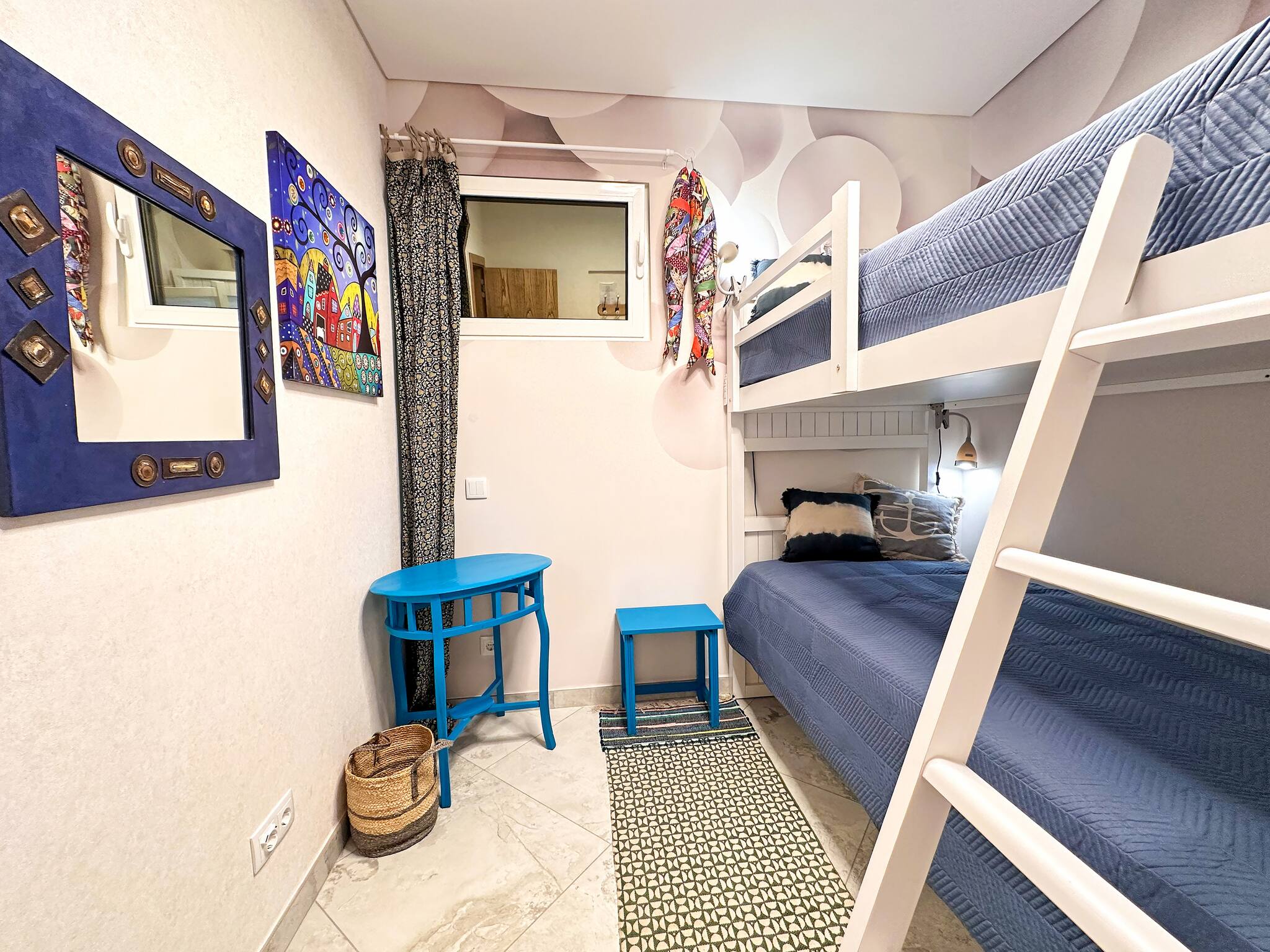 On the 1st floor is a uniquely decorated bedroom with a charming full-size bunk-bed (2x 90x200 beds).